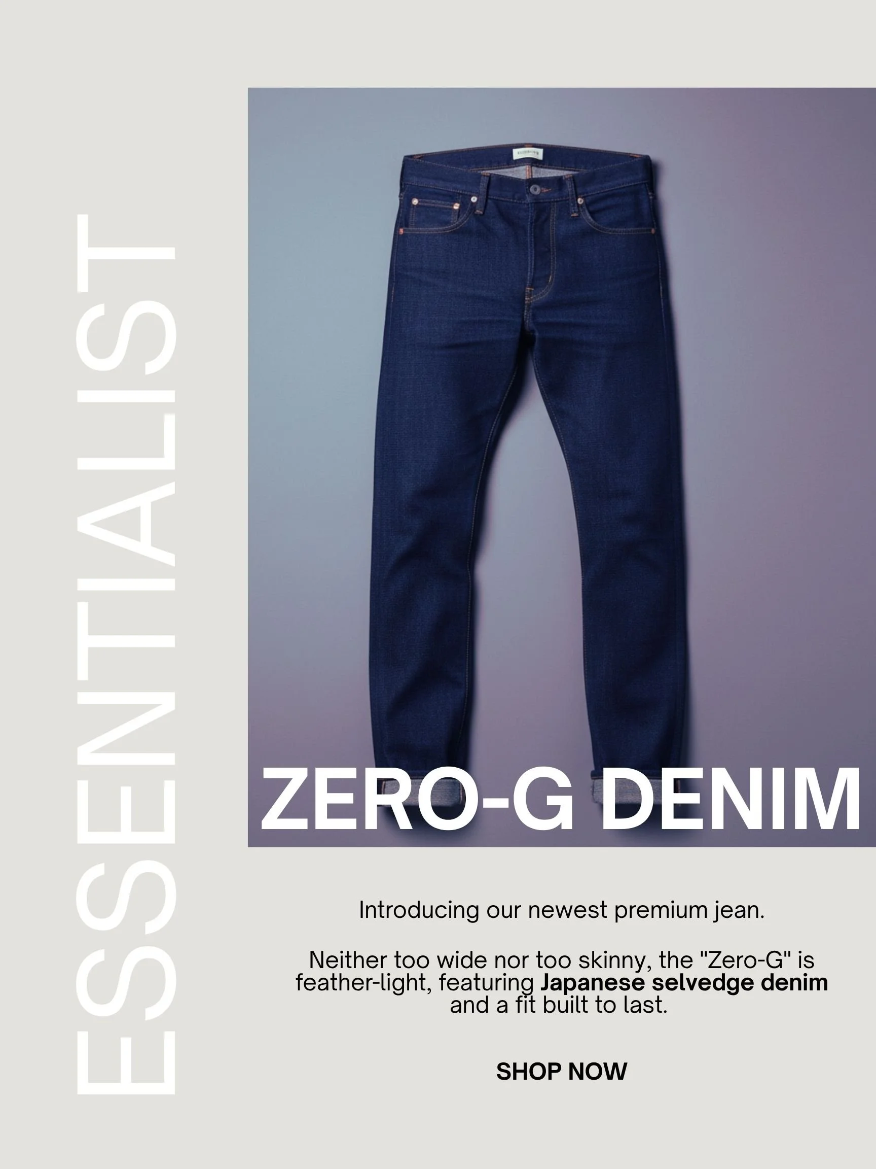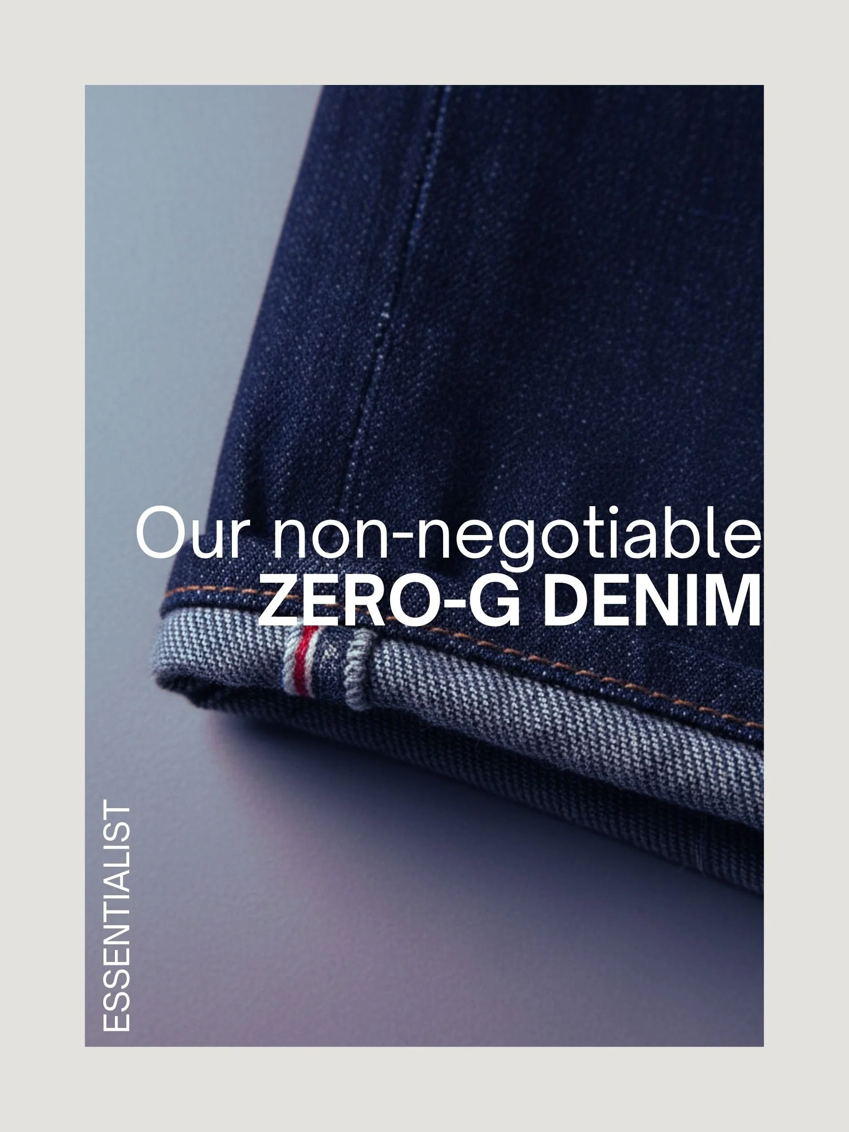 The Zero-G Denim is our newest, premium straight-leg jean. It's designed to be the definitive, perfect straight fit. The name "Zero-G" refers to the proprietary, feather-light, Japanese selvedge denim that maintains its structure without feeling stiff or heavy, offering unmatched all-day comfort. This is denim as an elevated foundation, not a casual throw-on.